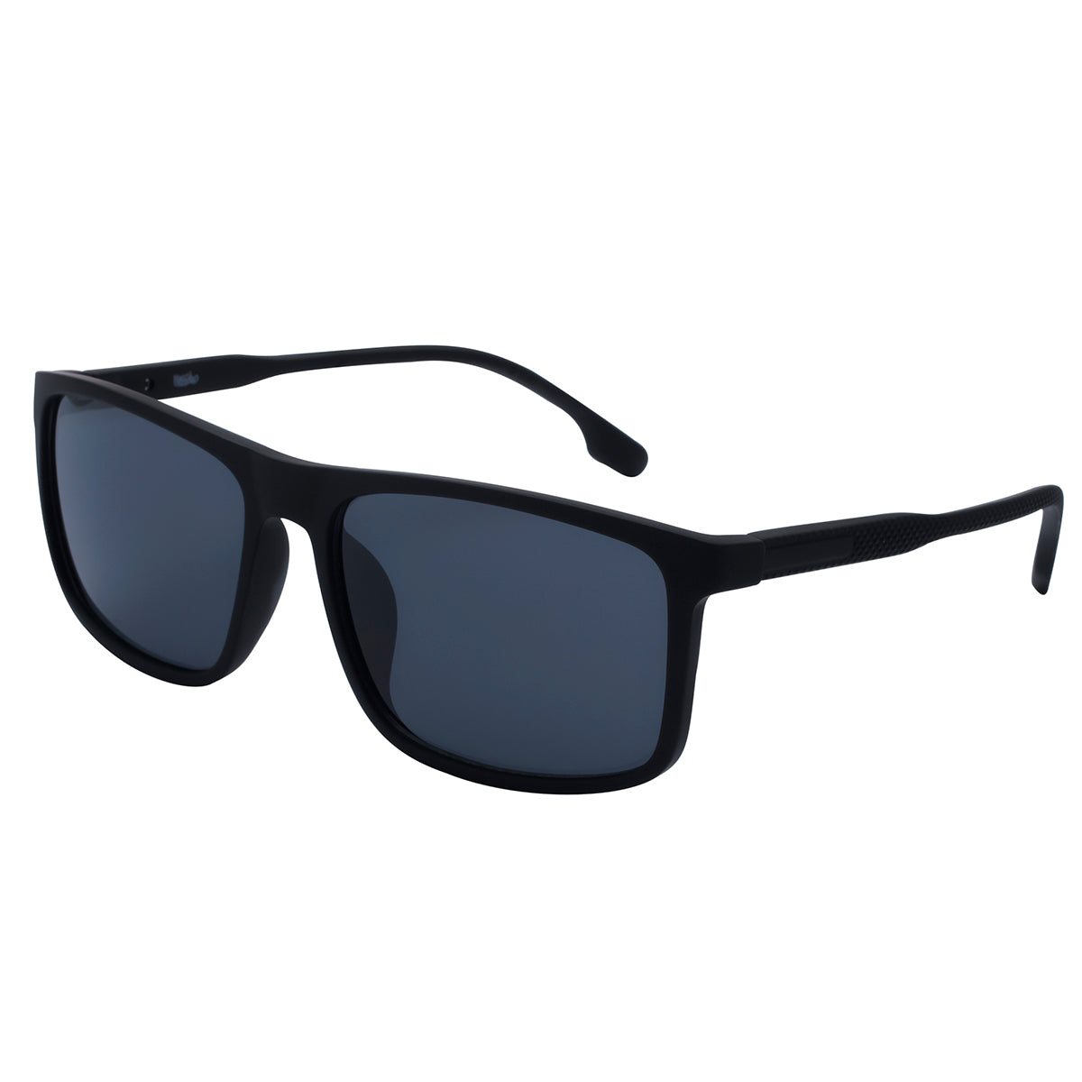 Lentes de sol cuadrados en pasta rubber negro.